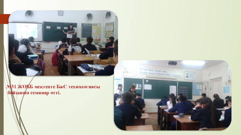 Слайд 13№31 ЖОББ мектепте БжС технологиясы бойынша семинар өтті.
