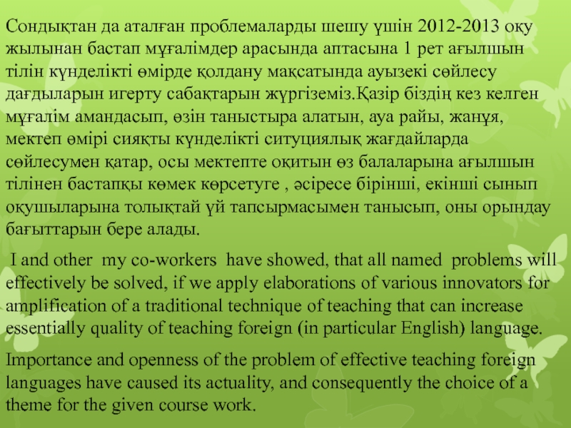 Слайд 3Сондықтан да аталған проблемаларды шешу үшін 2012-2013 оқу жылынан бастап мұғалімдер