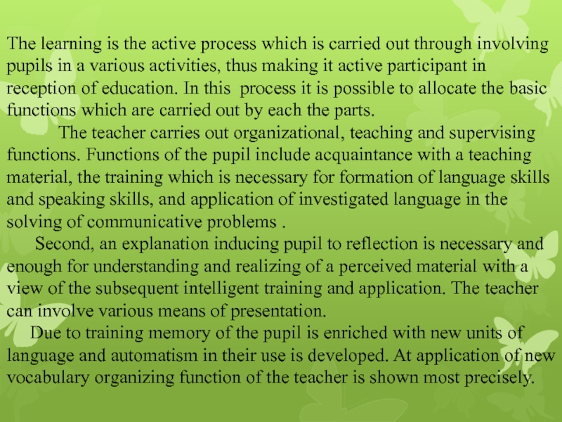 Слайд 11The learning is the active process which is carried out through