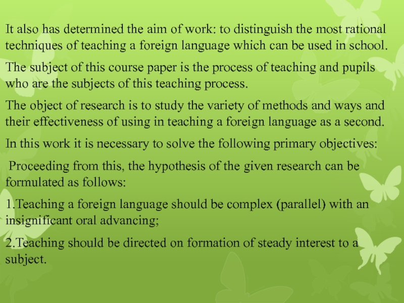 The object of research is to study the variety of methods and ways and their effectiveness of using in teaching a foreign language as a second.
