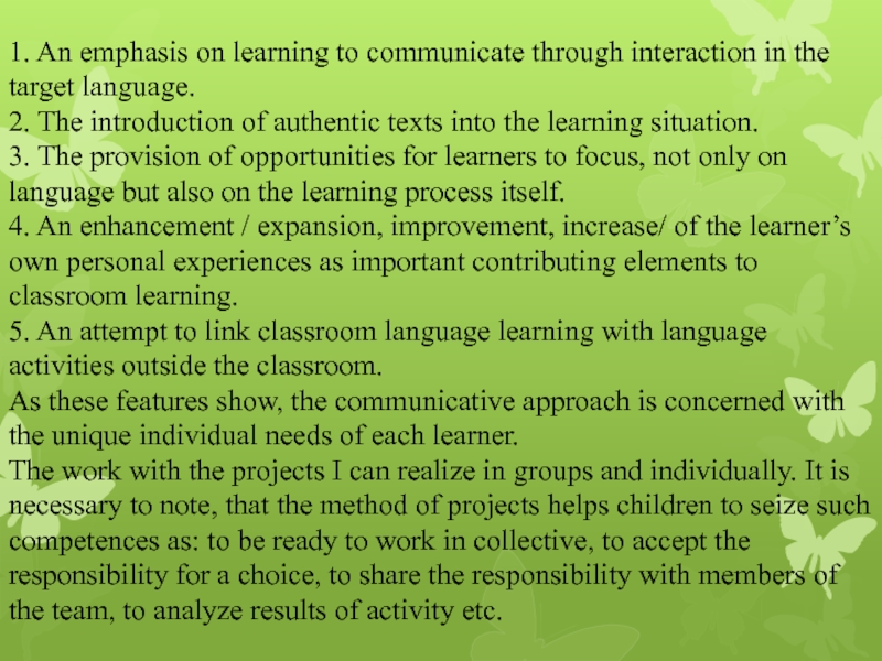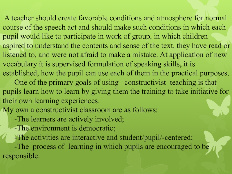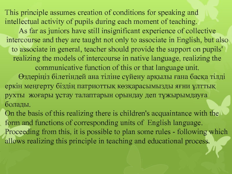 Слайд 8This principle assumes creation of conditions for speaking and intellectual activity