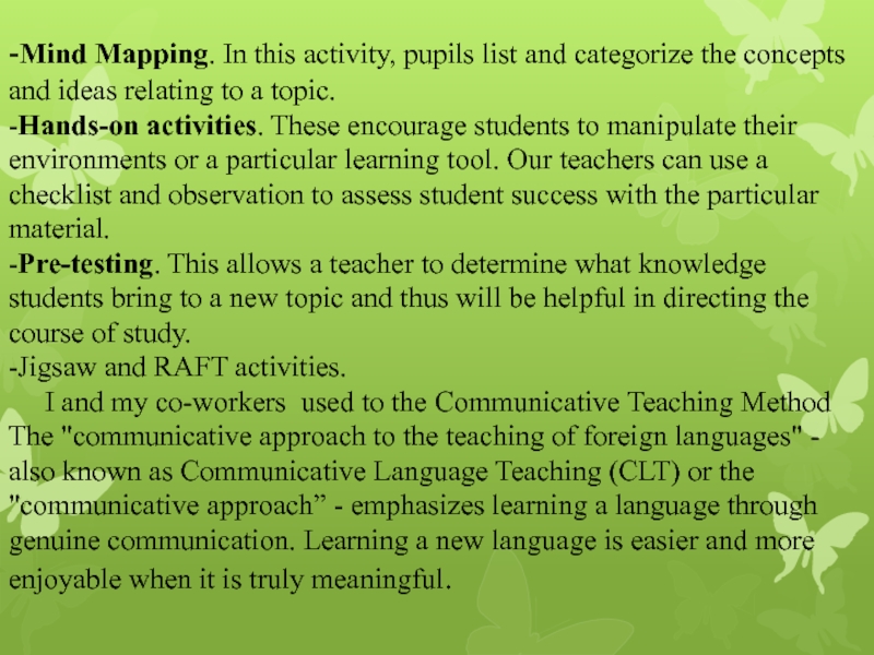 I and my co-workers used to the Communicative Teaching Method