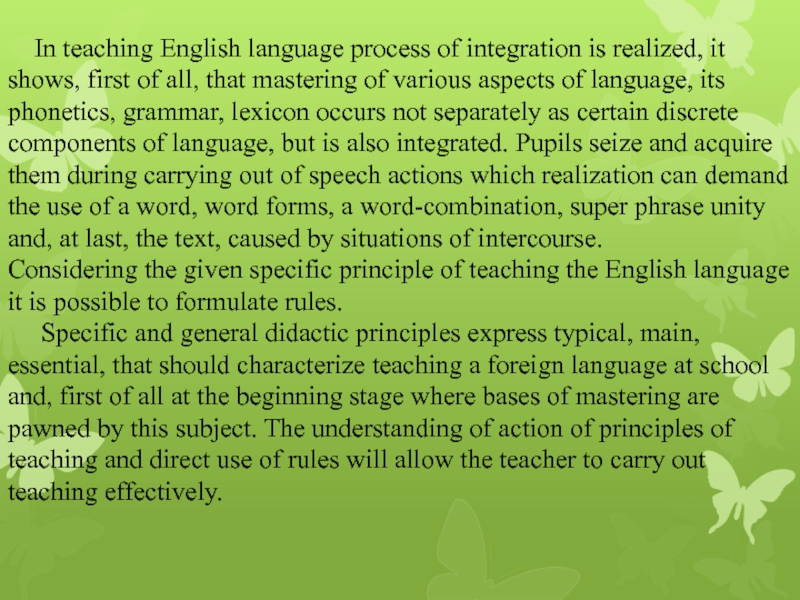 Слайд 10 In teaching English language process of integration is realized,