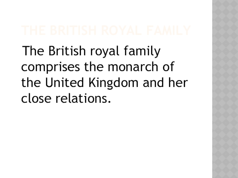The British royal family The British royal family comprises the monarch of the United Kingdom and her