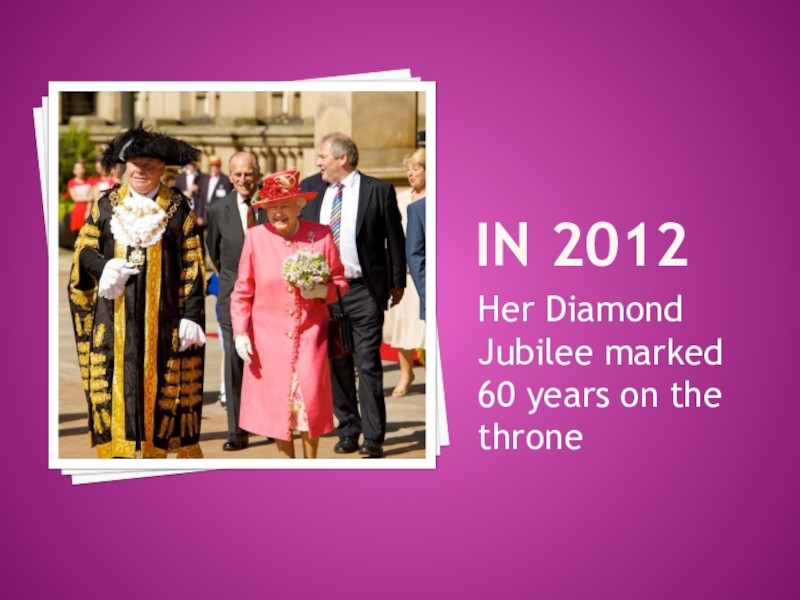 in 2012Her Diamond Jubilee marked 60 years on the throne