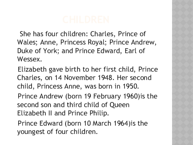 Презентация, доклад на тему Британская королевская семья. Королева Елизавета II