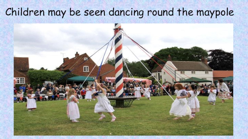 May day (1.05)Morris dance - a form of English folk dance usually accompanied by musicParades, fairs, tulip festivals