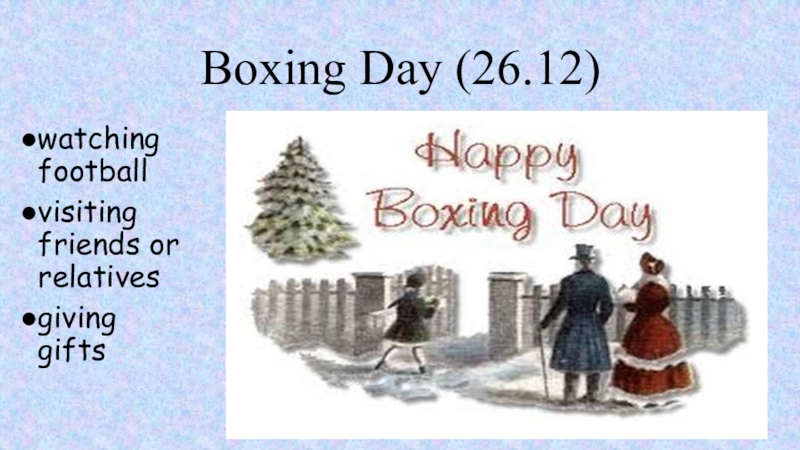 Boxing Day (26.12)watching footballvisiting friends or relativesgiving gifts