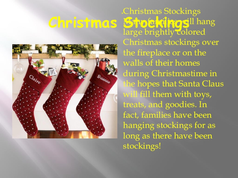 Christmas Stockings Many families will hang large brightly colored Christmas