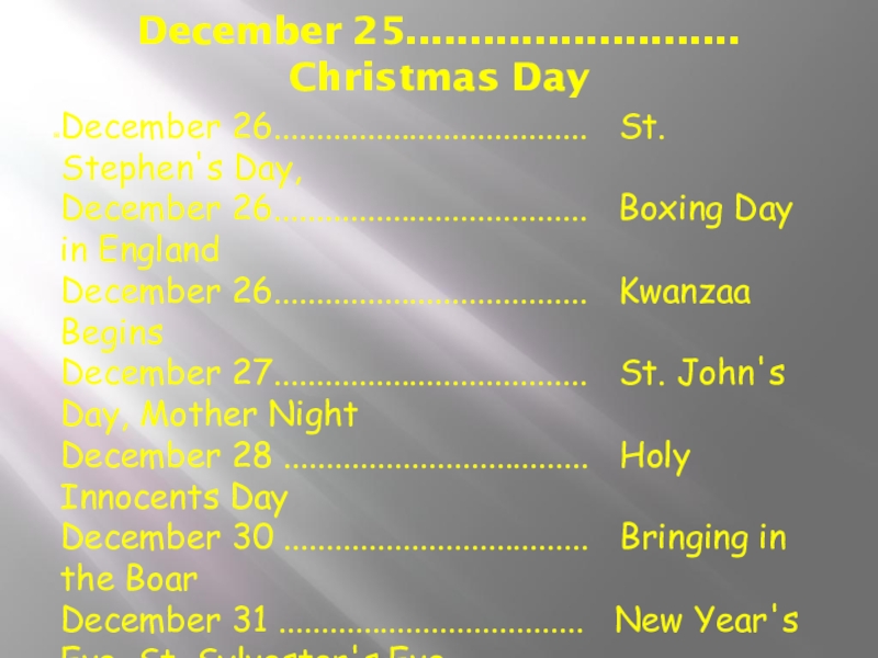 December 31 .................................... New Year's Eve, St. Sylvester's Eve,