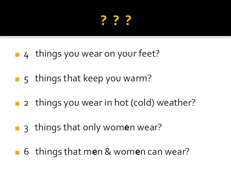 ? ? ?4  things you wear on your feet?5  things that keep you warm?2