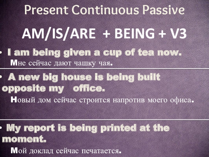 am/is/are + being + V3