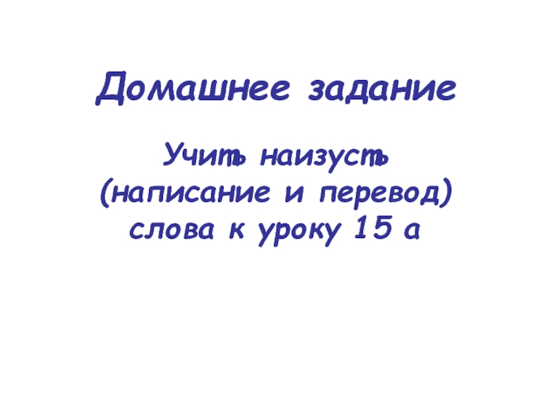 Домашнее заданиеУчить наизусть (написание и перевод) слова к уроку 15 a