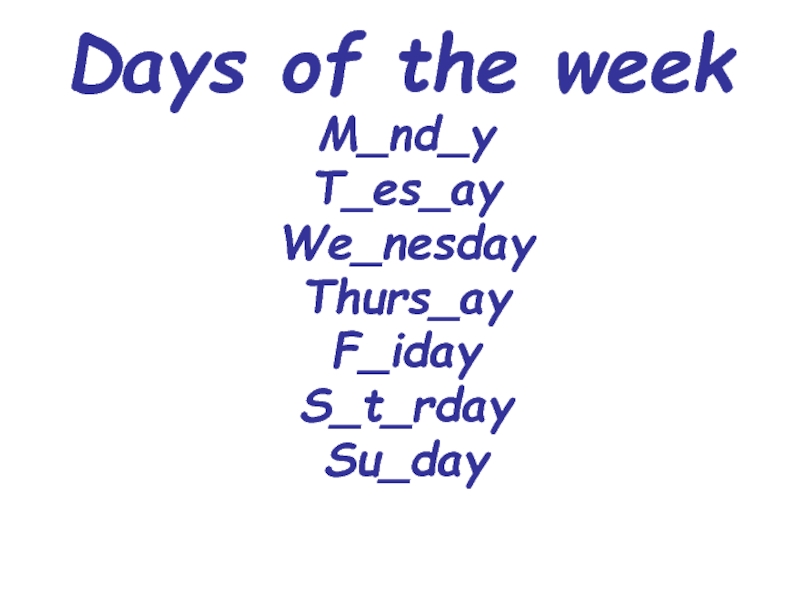 Days of the weekM_nd_yT_es_ayWe_nesdayThurs_ayF_idayS_t_rdaySu_day