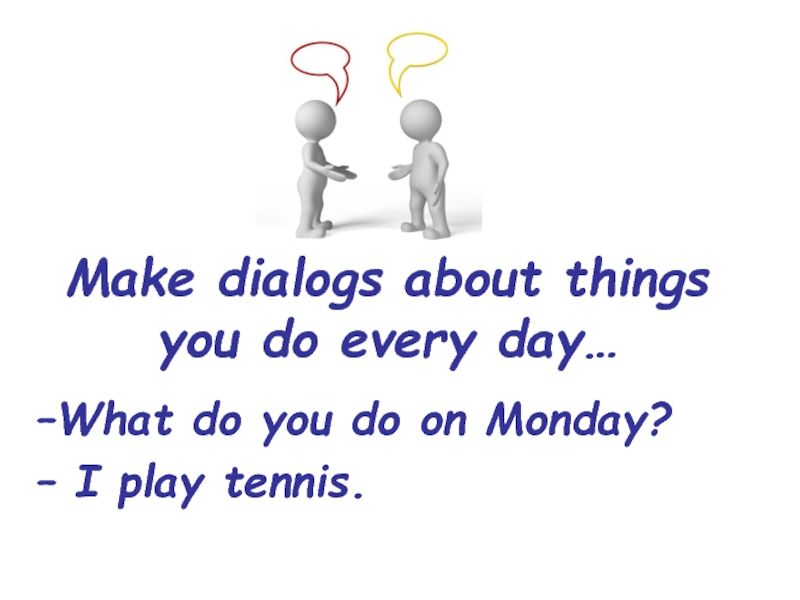 Make dialogs about things you do every day…What do you do on Monday? I play tennis.