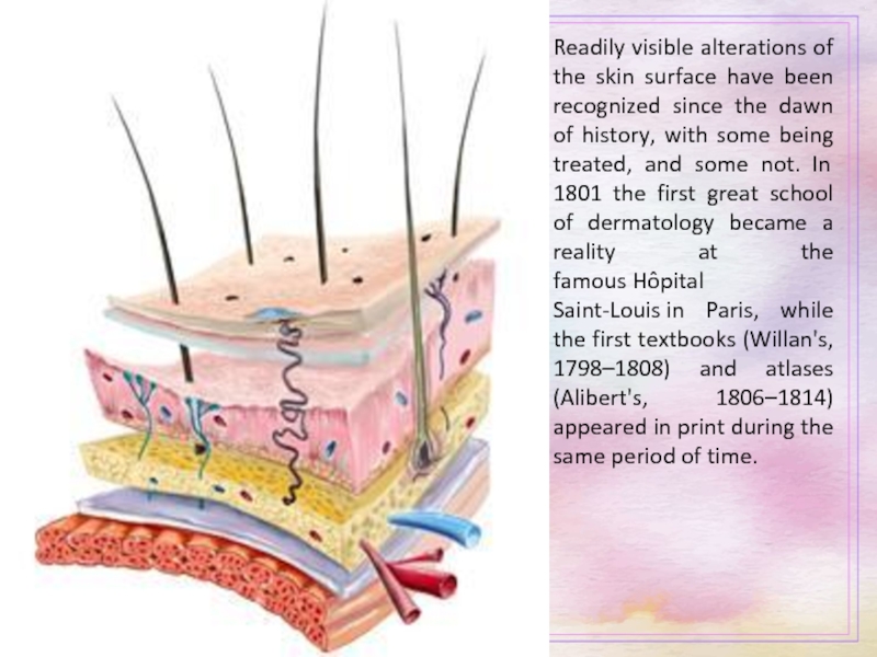 Слайд 3Readily visible alterations of the skin surface have been recognized since
