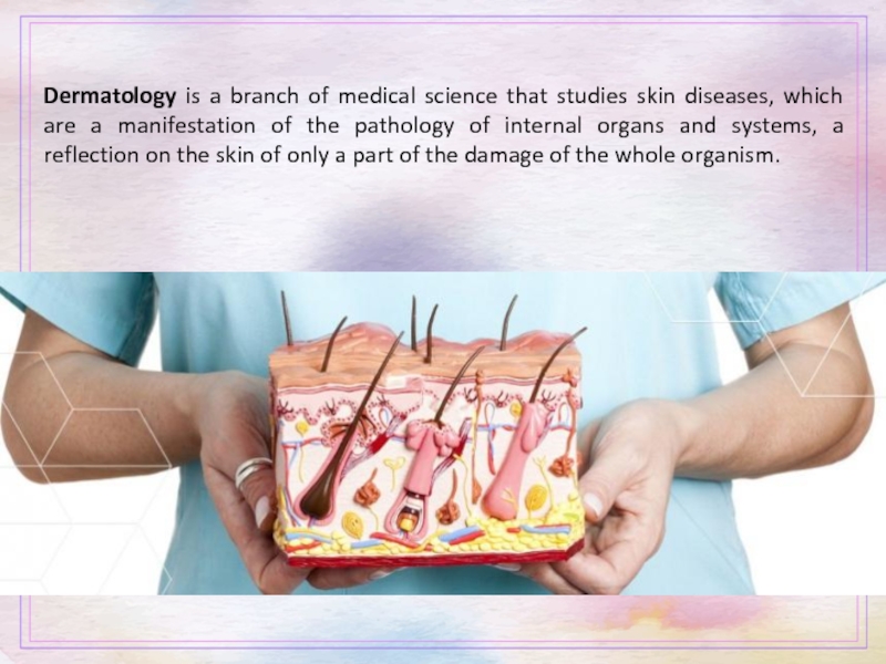 Слайд 2Dermatology is a branch of medical science that studies skin diseases,
