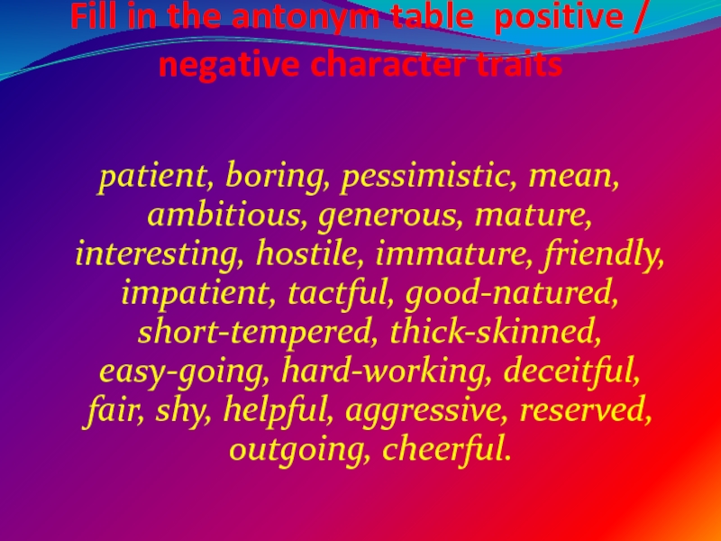 shy, sensitive, loving, inattentive, naughty, aggressive, reserved
