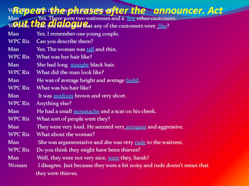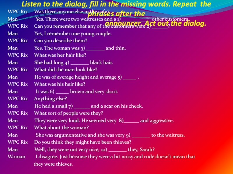 Man They were very loud. He seemed very 8)______ and aggressive.