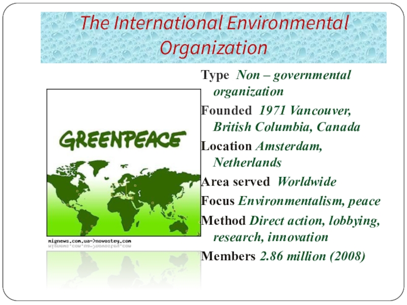 Слайд 8The International Environmental Organization