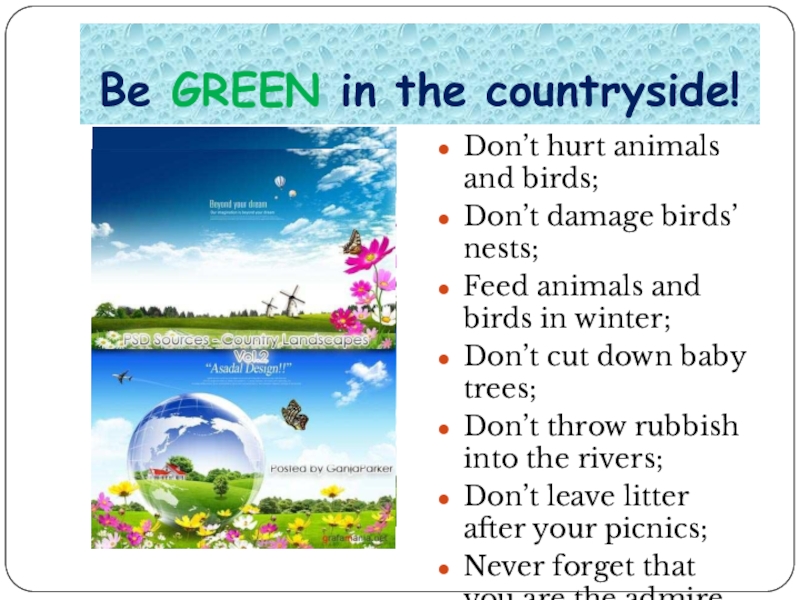 Слайд 6Be GREEN in the countryside!