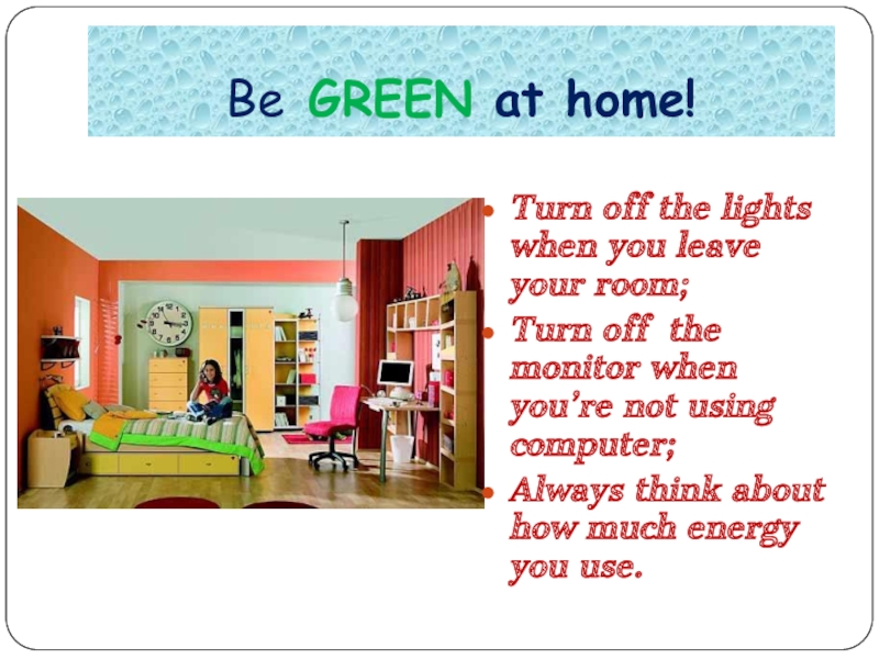 Слайд 5Be GREEN at home!