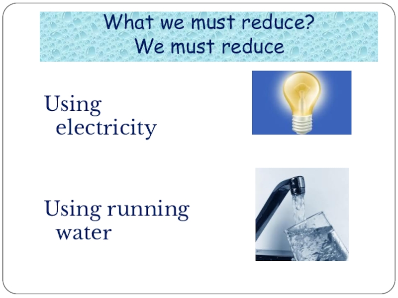 What we must reduce? We must reduceUsing electricityUsing running water