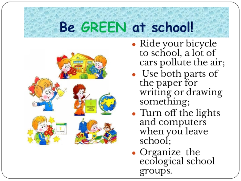 Слайд 7Be GREEN at school!