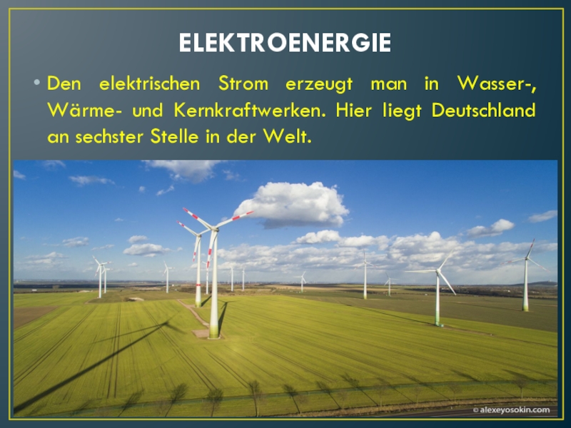 Den elektrischen Strom erzeugt man in Wasser-, Wärme- und Kernkraftwerken. Hier