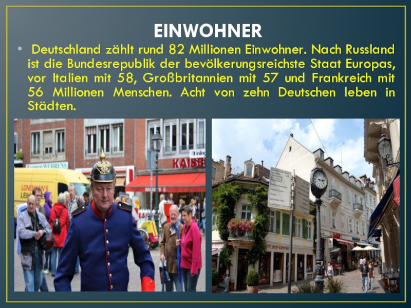 Deutschland zählt rund 82 Millionen Einwohner. Nach Russland ist