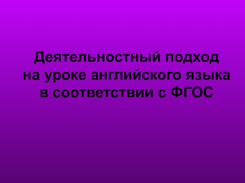 Слайд 1 Деятельностный подход на уроке английского языка в соответствии с ФГОС