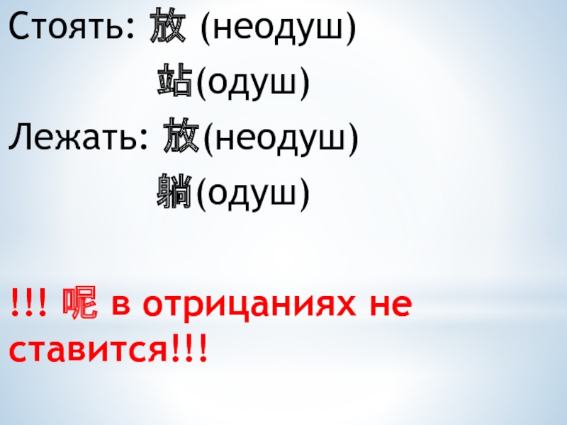 Слайд 22Стоять: 放 (неодуш)