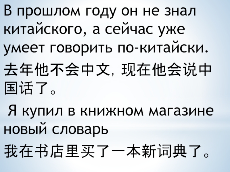 Слайд 13В прошлом году он не знал китайского, а сейчас уже умеет