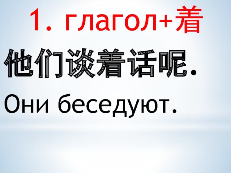 1. глагол+着他们谈着话呢.Они беседуют.