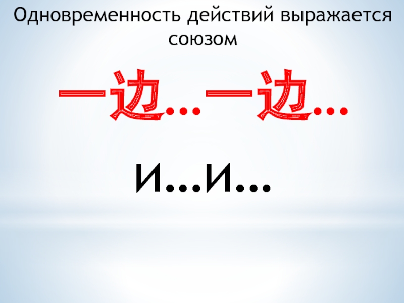 Одновременность действий выражается союзом 一边…一边…и…и…