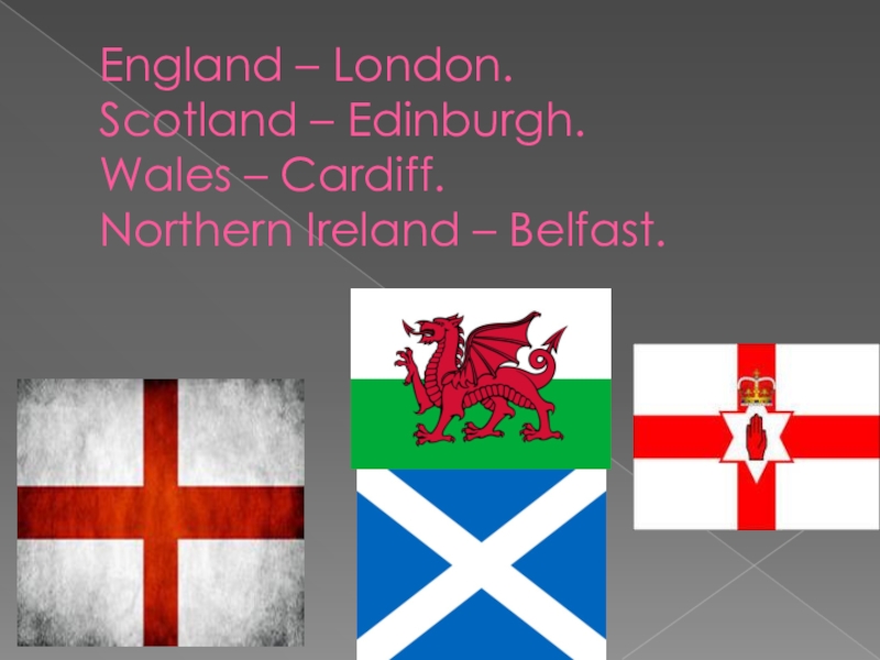 Слайд 11England – London. Scotland – Edinburgh. Wales – Cardiff. Northern Ireland – Belfast.