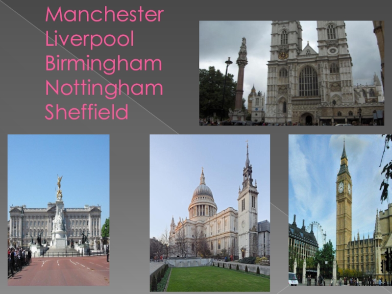 Слайд 18Manchester Liverpool Birmingham Nottingham Sheffield