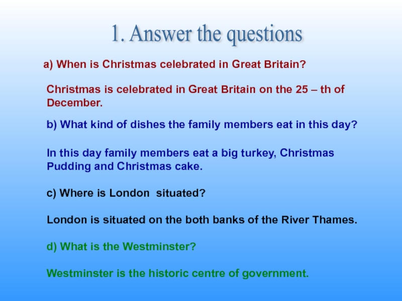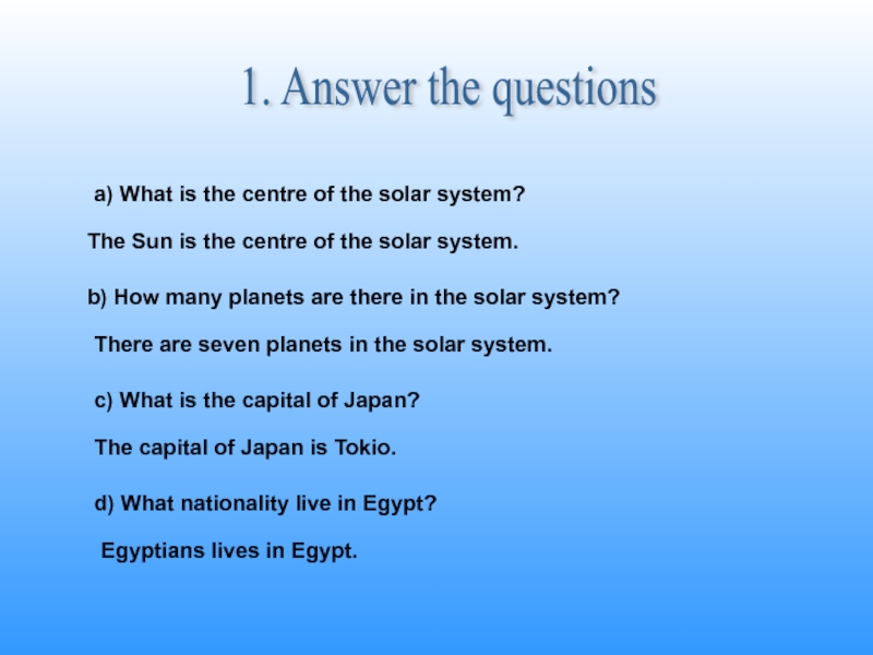 Слайд 431. Answer the questions