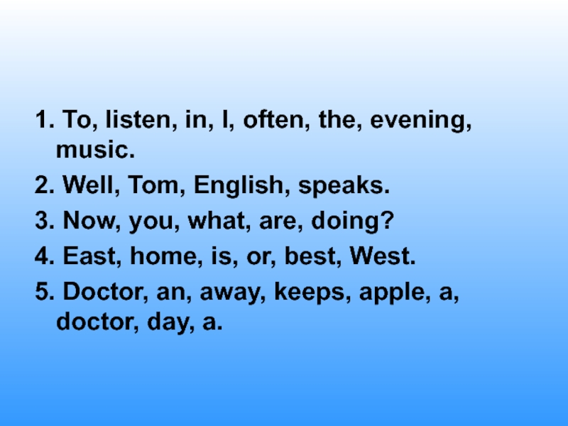 Слайд 671. To, listen, in, I, often, the, evening, music.