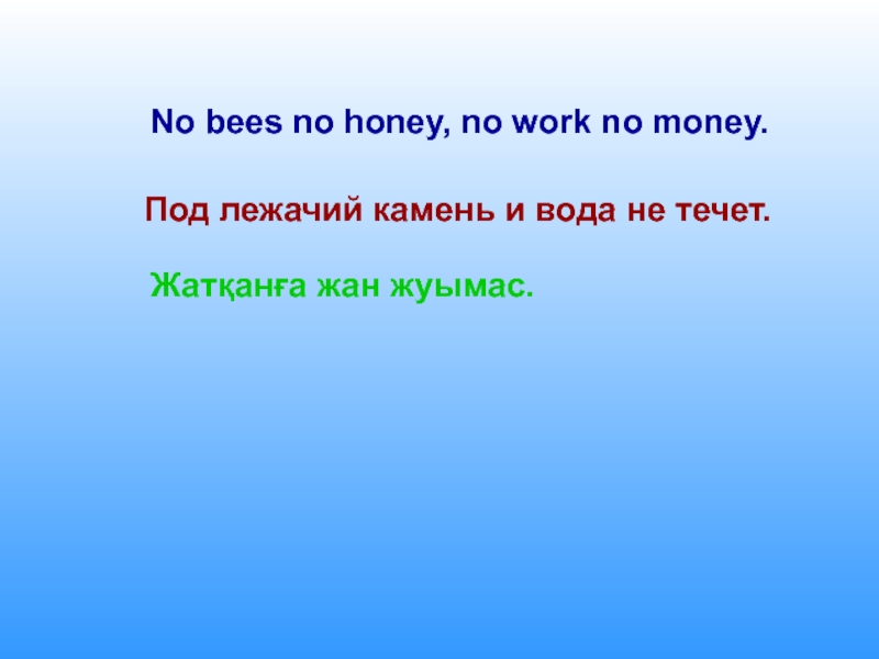 Слайд 59No bees no honey, no work no money.