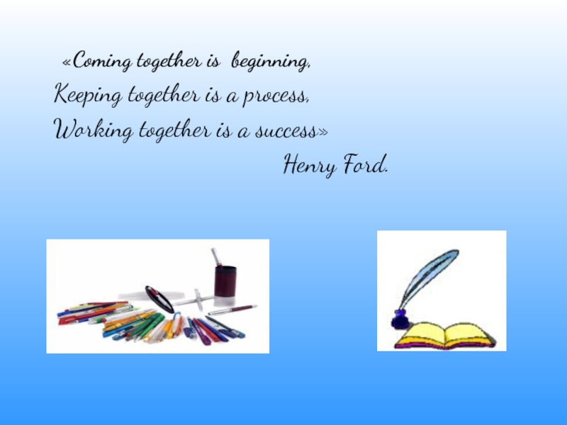 Слайд 3«Coming together is beginning,