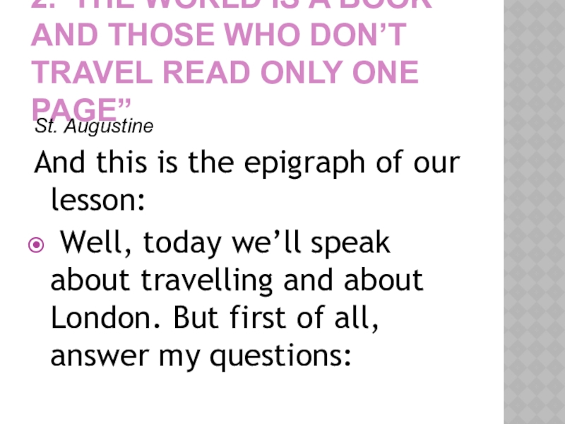 Слайд 62.“THE WORLD IS A BOOK AND THOSE WHO DON’T TRAVEL READ