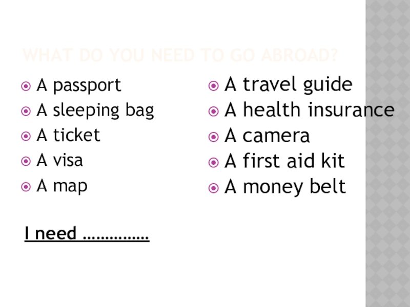 Слайд 12WHAT DO YOU NEED TO GO ABROAD?