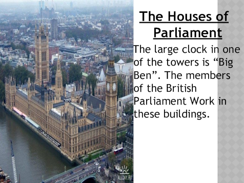towers is “Big Ben”. The members of the British Parliament Work in these buildings.