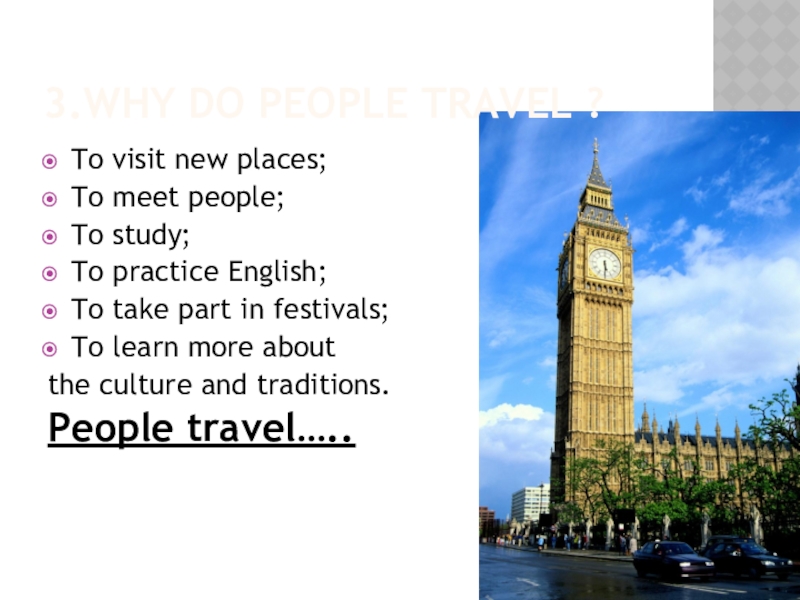 Слайд 73.WHY DO PEOPLE TRAVEL ?