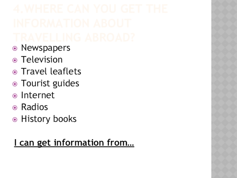 Слайд 94.WHERE CAN YOU GET THE INFORMATION ABOUT TRAVELLING ABROAD?