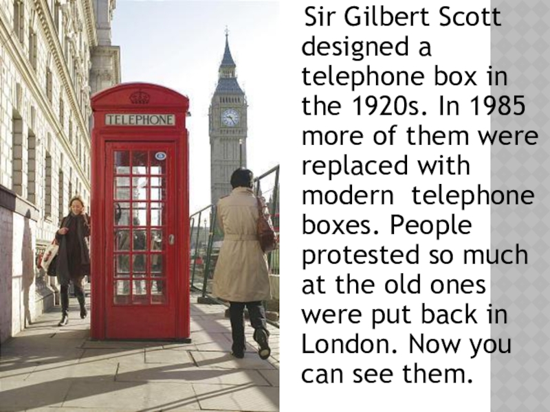 Слайд 37 Sir Gilbert Scott designed a telephone box in the