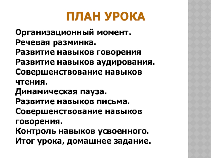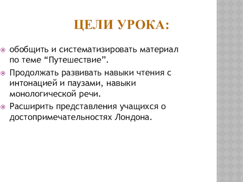 Развивающие: Закрепить развитие навыков аудирования; монологического высказывания по теме; развитие лексических и грамматических навыков. Формировать умения обобщать и делать выводы по предложенной теме.