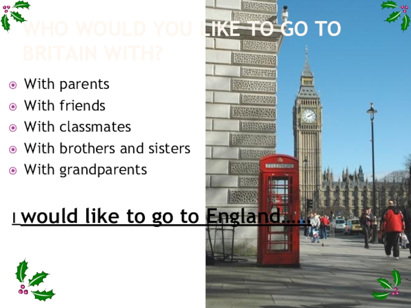 Слайд 13WHO WOULD YOU LIKE TO GO TO BRITAIN WITH?