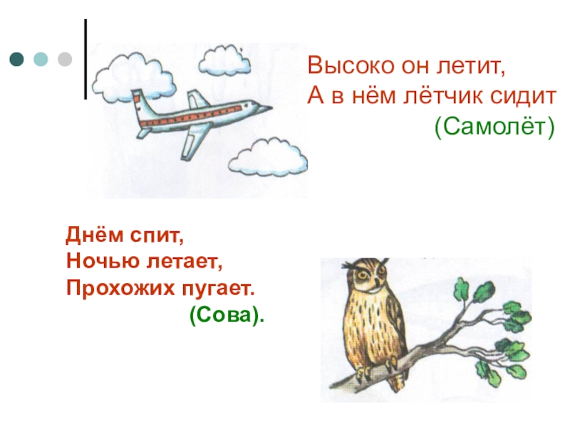 Высоко он летит, А в нём лётчик сидит         (Самолёт)Днём